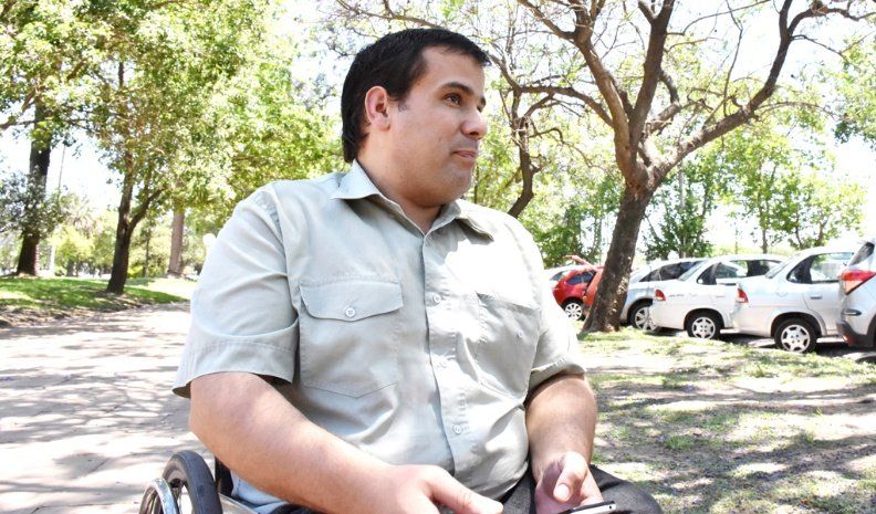 Como al final de cada jornada, Lucas sale del Municipio “remando” las ruedas de su silla por Plaza Independencia. Allí lo encuentro y me cuenta que dará una charla-taller en la Medioteca. Y que, por cierto, el tema será el mismo que lo atraviesa desde su nacimiento: la discapacidad