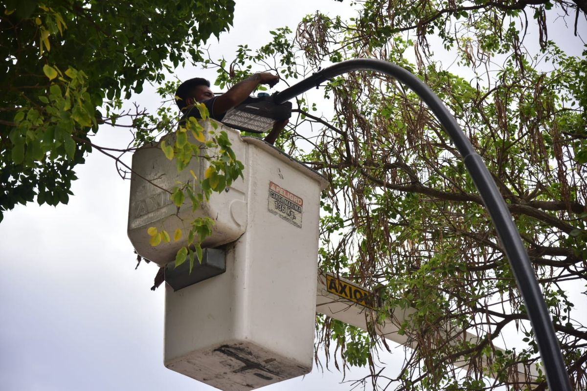 Las tareas estuvieron a cargo del área de Alumbrado y Semaforización, dependiente de la Secretaría de Ambiente, Obras y Servicios Públicos, que trabaja en la reposición del sistema de alumbrado público, tanto de sus dispositivos de iluminación como en las columnas y cableado.