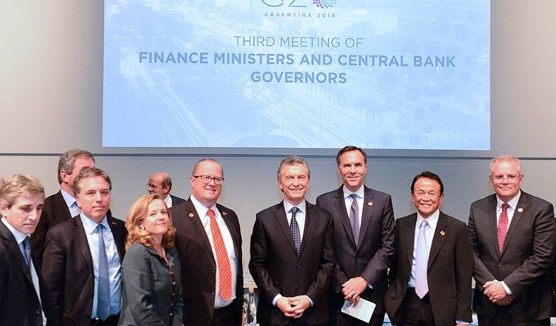 Ante los ministros de Finanzas y jefes de bancos centrales de las principales economías del mundo, Macri recordó que "hace algunas semanas la Argentina tuvo que hacer frente a algunas turbulencias debidas a volatilidades externas y algunos factores internos, pero se logró navegar por estas aguas agitadas y mantener el rumbo".