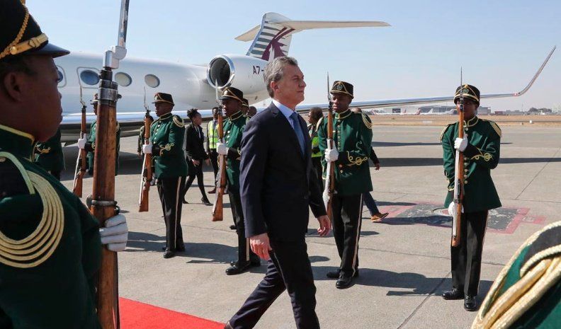 El mandatario llegó al Aeropuerto Internacional OR Tambo, acompañado por la primera dama, Juliana Awada y ambos fueron recibidos por el embajador en Sudáfrica, Javier Figueroa, y el director nacional de Ceremonial de Cancillería, Marcelo Suárez Salvia.
