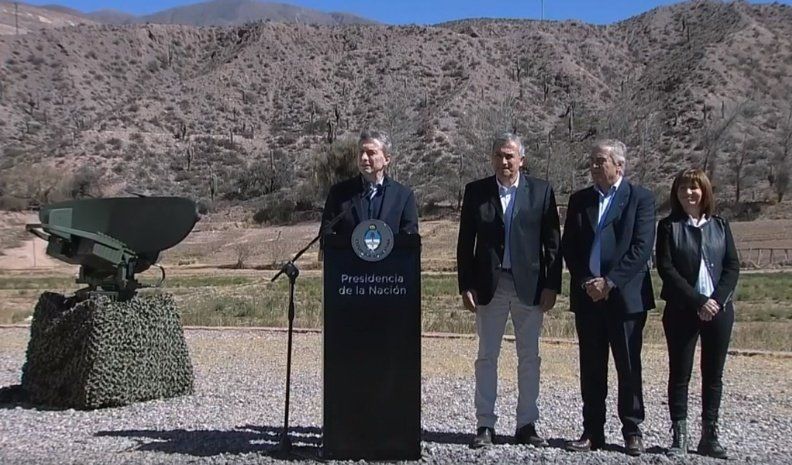 Macri encabezó el acto desde la Puna, acompañado por el ministro de Defensa, Oscar Aguad; las ministras de Seguridad, Patricia Bullrich y Desarrollo Social, Carlonia Stanley; el Gobernador Gerardo Morales y el titular del Estado Mayor Conjunto de las Fuerzas Armadas, teniente general Bari del Valle Sosa.