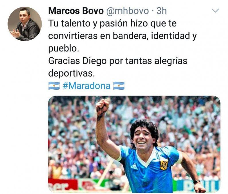 Por su parte, secretario de Comunicación del gobierno provincial, Marcos Bovo también expresó su dolor en la cuenta de Twitter.