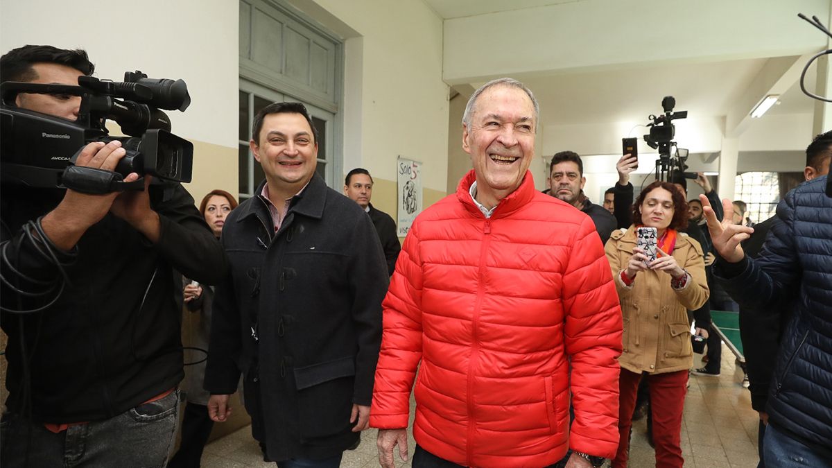 En la mañana del domingo electoral, el candidato a presidente y actual gobernador de Córdoba, Juan Schiaretti, llegó a votar en las elecciones provinciales acompañado de Marcos Bovo, el villamariense secretario de Comunicación del Gobierno de Córdoba y precandidato a intendente en Villa María.
