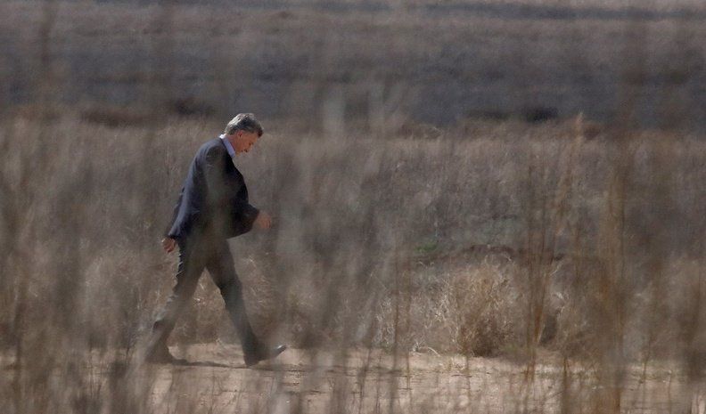Mauricio Macri camina cabizbajo por un suelo polvoriento, en un contexto agreste. Está solo. Esa foto que Matías Tambone captó en Achiras refleja un momento puntual pero puede ser a la vez un resumen, una condensación de un estado de situación general. Es la imagen de un presidente agobiado.