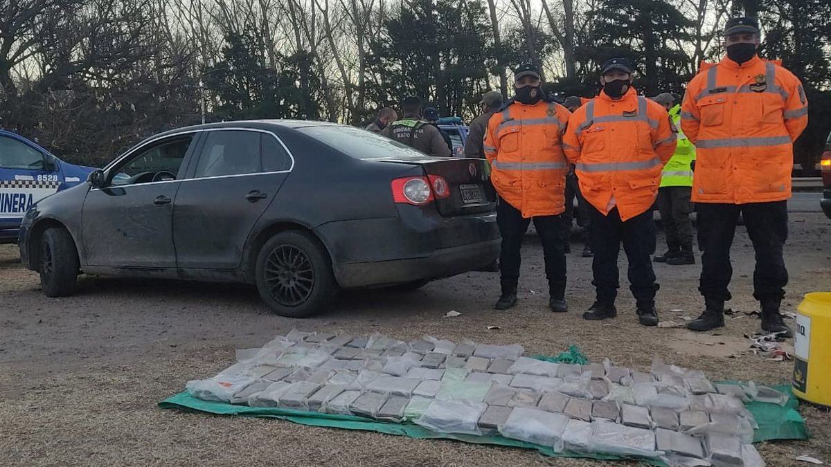 La fuerza especializada certificó que en el interior del baúl del Vento había 94 ladrillos de picadura de marihuana compactada, con un total cercano a los 90 kilos.