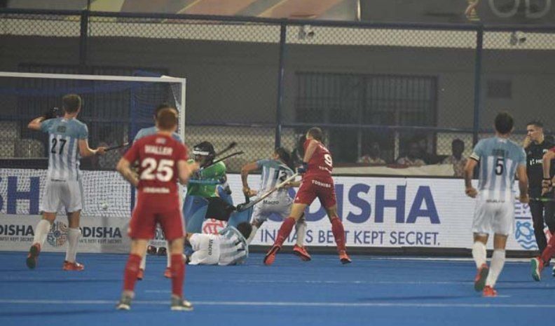 Los goles del encuentro, jugado en el Kalinga Stadium, fueron convertidos por Agustín Peillat (dos, ambos en corners cortos) para Argentina, y Barry Middleton, Will Calnan y Harry Martín para los ingleses.