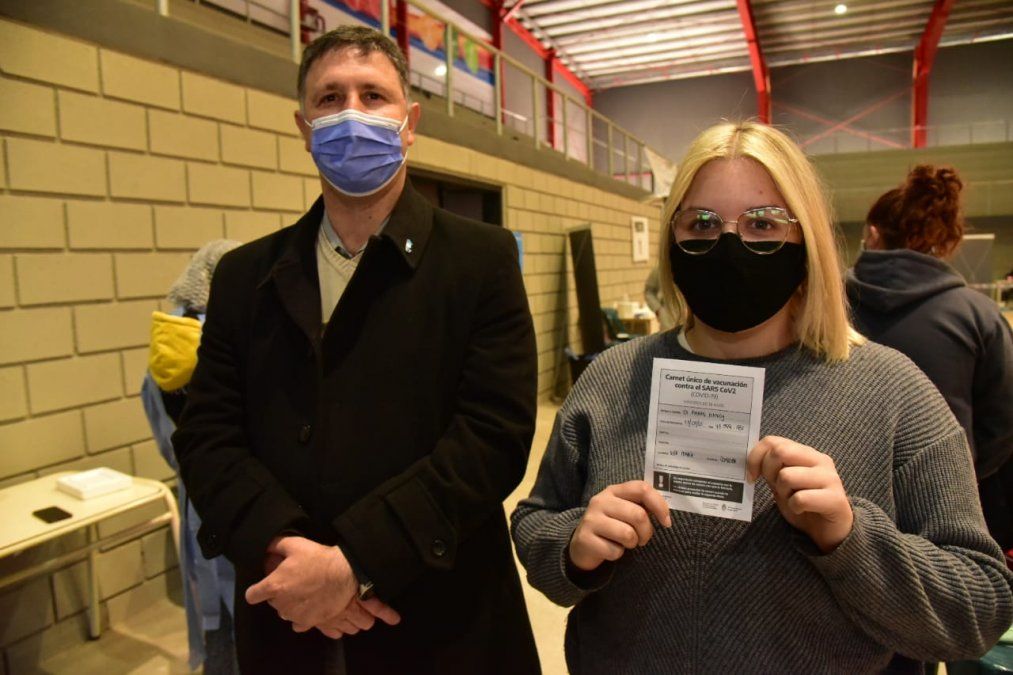 La vacunación de la joven fue seguida desde cerca por el intendente interino, Pablo Rosso, quien dijo sentirse satisfecho por la cantidad de inmunizados.