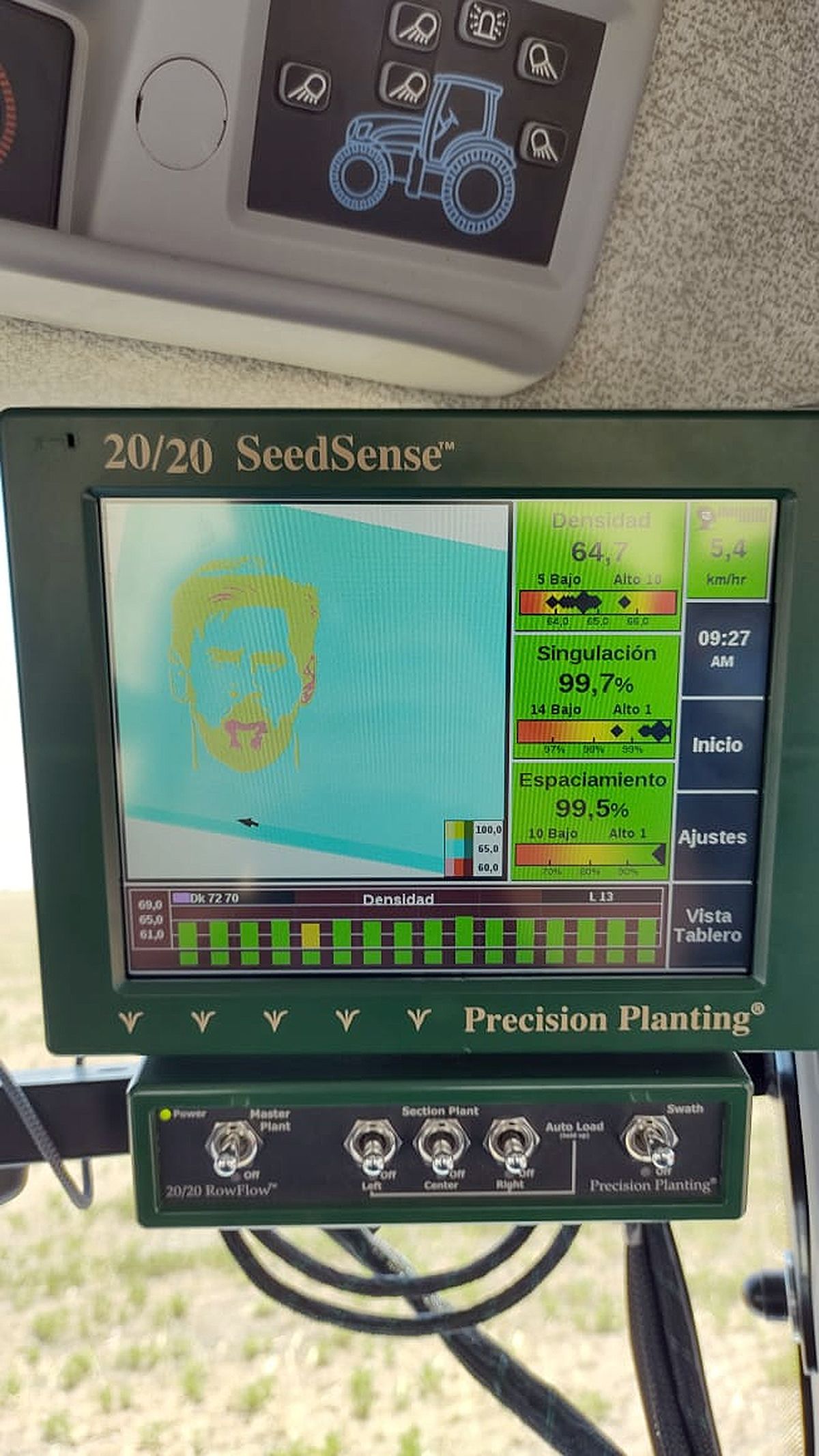 El entusiasmo es tal que, mientras siembran, los productores sacan fotografías de la computadora que va en el tractor y que contiene la información del diseño para dosificar la siembra.