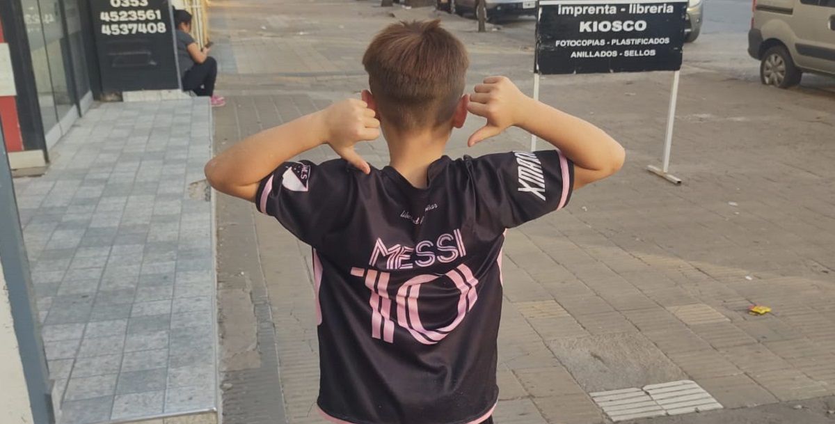 Miqueas tiene 7 años y es oriundo de Ausonia, llegó a Villa María con su mamá y su abuela con el propósito de conseguir la indumentaria del Inter de Miami. Se llevó puesto el equipo alternativo.