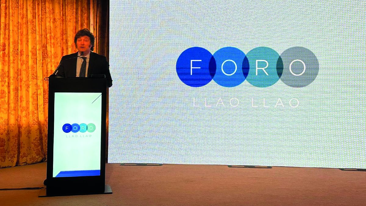 "No creo en una economía dirigista", aseguró además Milei al exponer ante empresarios de renombre en el Foro que se realiza a puertas cerradas en el Hotel Llao Llao, ubicado en la ciudad de Bariloche, y les prometió que viene una "baja de impuestos".