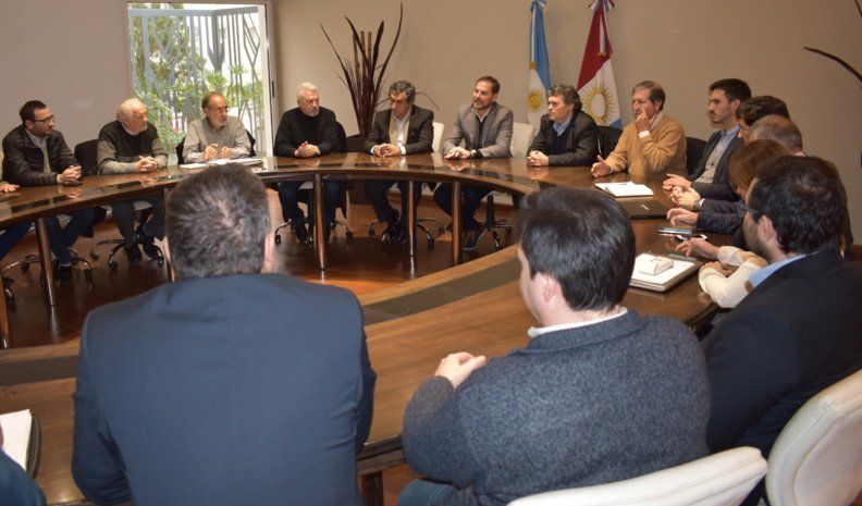 El ministro de Ciencia y Tecnología de Córdoba, Walter Robledo, junto al especialista del Banco Interamericano de Desarrollo (BID), Gabriel Casaburi, se reunieron con representantes de universidades y empresarios. El encuentro tuvo lugar en el Salón Oval y también participó el intendente Martín Gill.