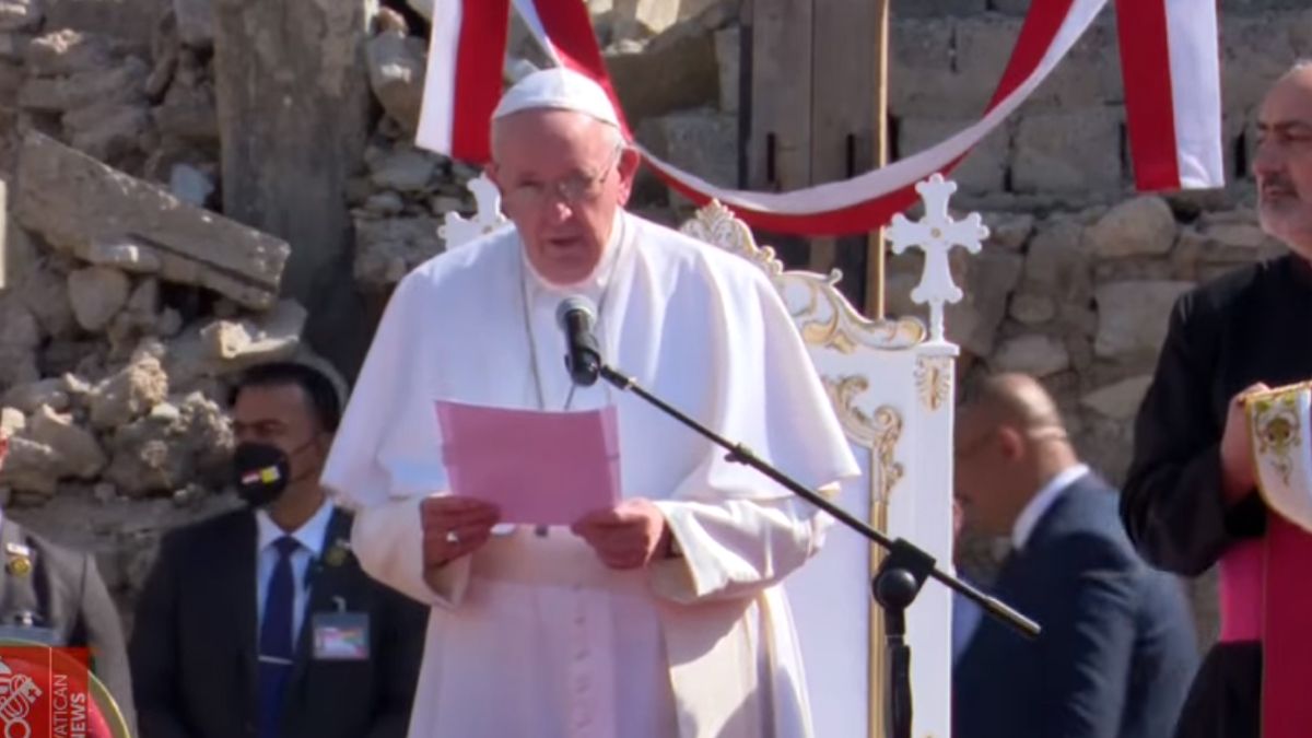 "Si Dios es el Dios de la vida, y lo es, a nosotros no nos es lícito matar a los hermanos en su nombre", planteó este domingo el Papa al visitar la ciudad del Norte iraquí en el tercer día de su visita al país.