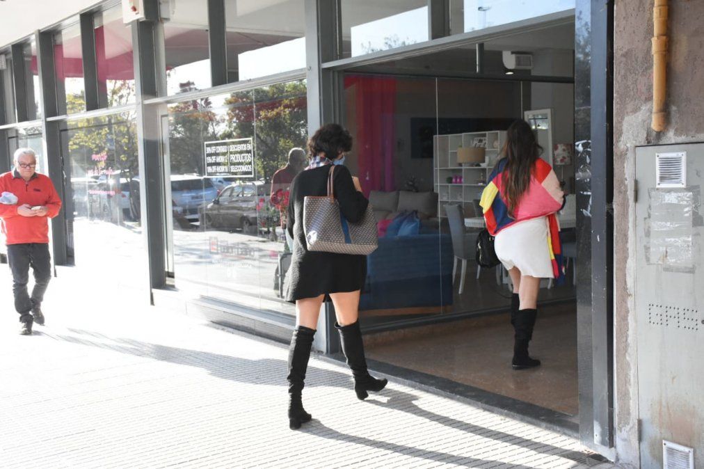 Casi en la esquina de General Paz y Santa Fe, este matutino vio a una cantidad considerable de gente aguardando para ingresar a una tienda de indumentaria. Además de cumplir con el uso de tapabocas, la gente también acató el distanciamiento social, al igual que en los bancos.