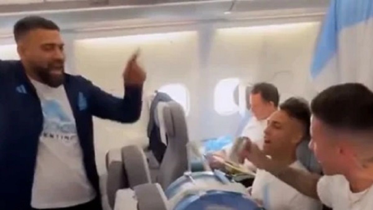 Tras el triunfo mundial de ayer, el plantel, cuerpo técnico y staff emprendieron el vuelo de regreso al país y, en el camino, le cambiaron la letra a la canción creada por La Mosca para alentar a la selección durante el Mundial de Qatar 2022, 'Muchachos'.