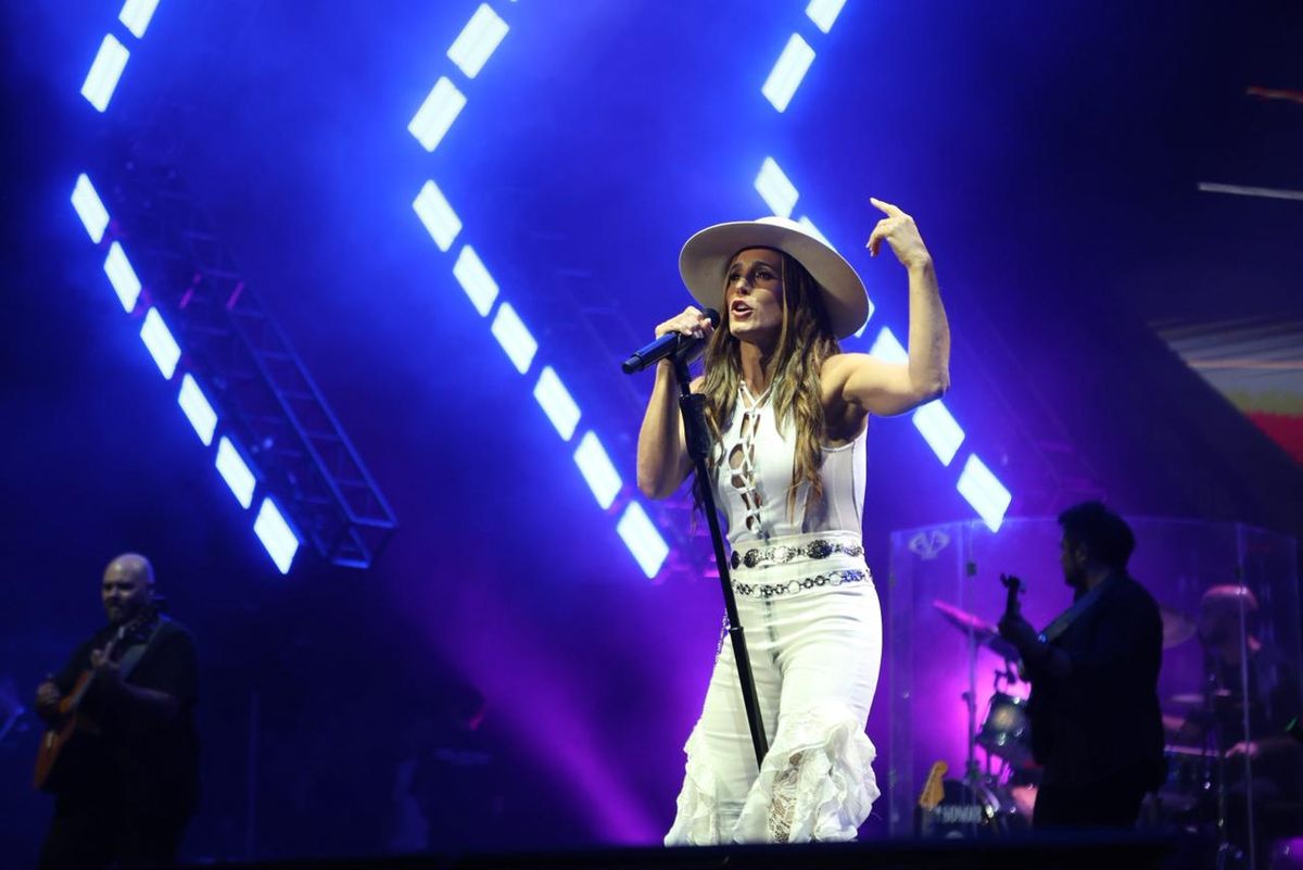 Soledad Pastorutti se subió al escenario del 58° Festival Internacional de Peñas para celebrar sus 30 años de trayectoria, en una presentación cargada de emoción y simbolismo. Con un Anfiteatro Municipal completamente colmado, la artista fue ovacionada desde su aparición, luciendo un impactante atuendo blanco, con pantalón con flecos, chaleco y sombrero blanco, que acompañó la fuerza de su presencia escénica.