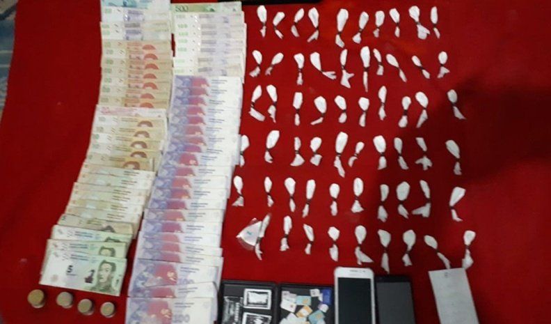 Por otra parte, en la vivienda del aprehendido, quien poseía antecedentes por robo, con la ayuda de los canes detectores de narcóticos, se secuestraron 59 envoltorios de cocaína, 3.833 pesos y un billete de diez pesos con restos de droga.