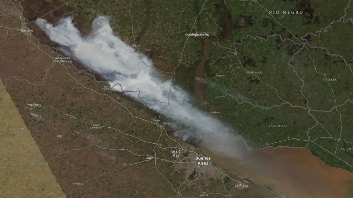 Una imagen de un satélite de la NASA muestra la nube de cenizas por los incendios en el Delta del Paraná