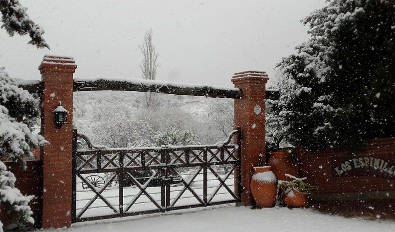 Las fotos y los videos que comenzaron a circular en las redes mostraban paredones, portales y hasta tranqueras cubiertas de nieve que contrastaban con el colorido de las paredes y la madera.