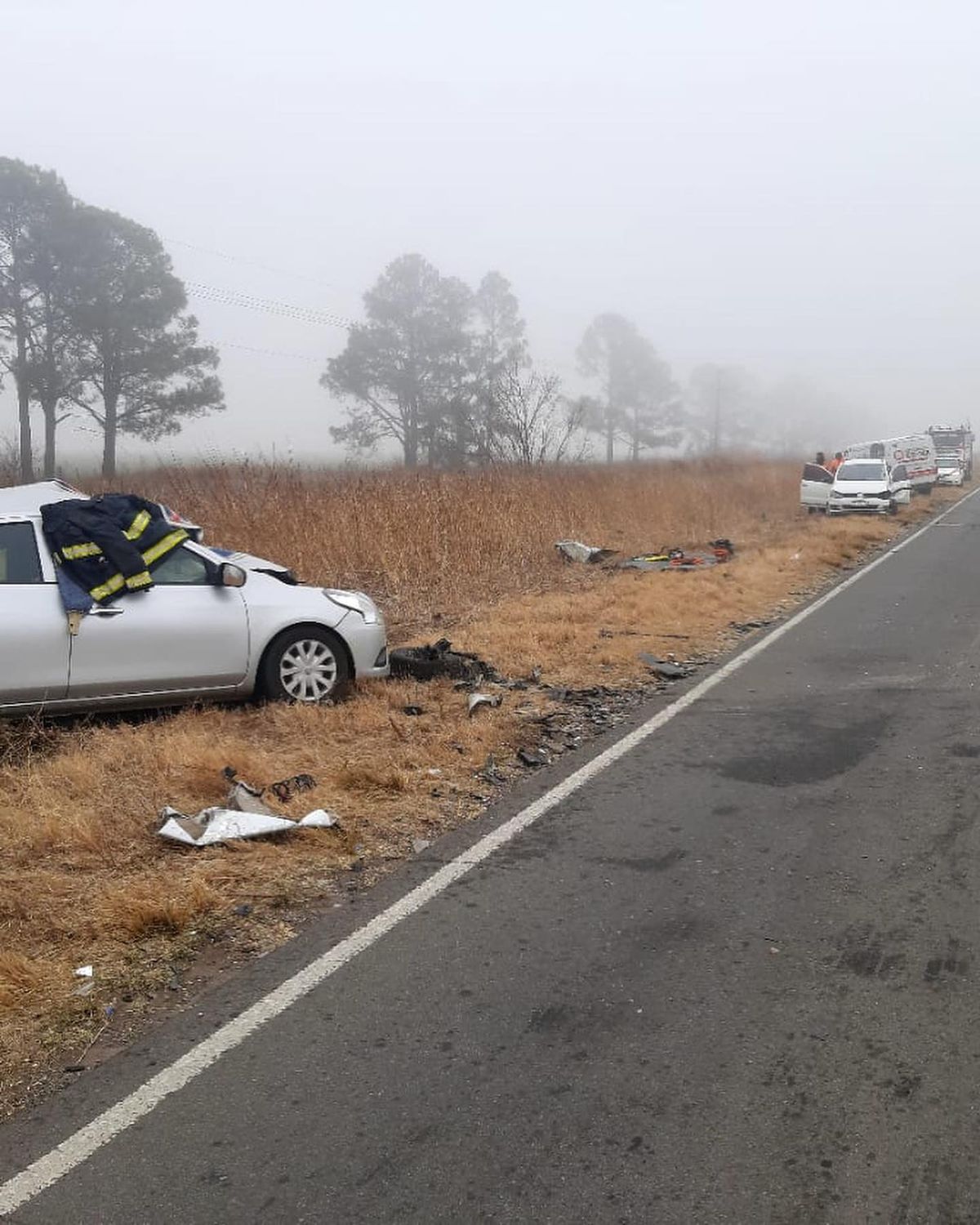 El Nissan era conducido por Bonifacich (71) oriundo de Canals, quien circulaba de Oeste a Este. Consecuentemente, otro automóvil marca VW Suran, conducido por la señora de 55 años, de apellido Rodríguez y oriunda de Monte Maíz, también es involucrado en el accidente.
