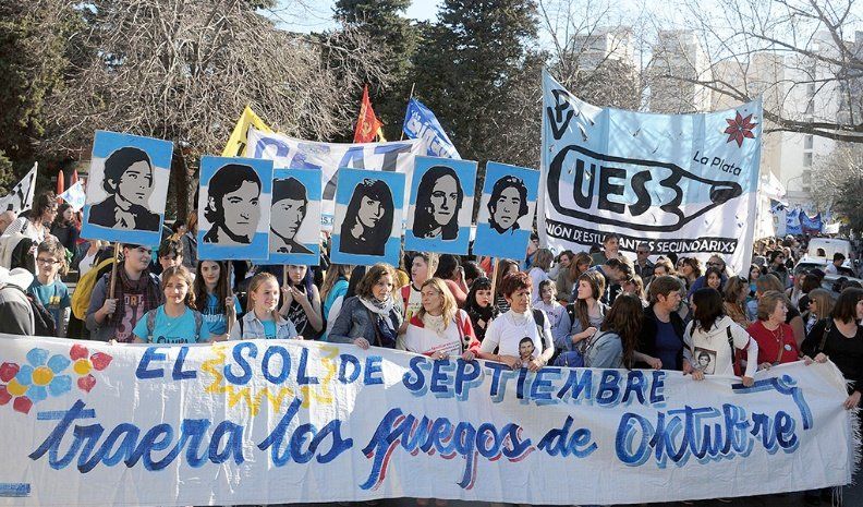 Catalina Odriosola, del Centro de Estudiantes del Normal 1 de La Plata, explicó a Télam: "Hoy marchamos con la consigna 'El sol de septiembre traerá los fuegos de octubre', y vamos a reivindicar a nuestros compañeros desaparecidos, no sólo manteniéndolos vivos sino continuando la lucha por las mismas banderas".