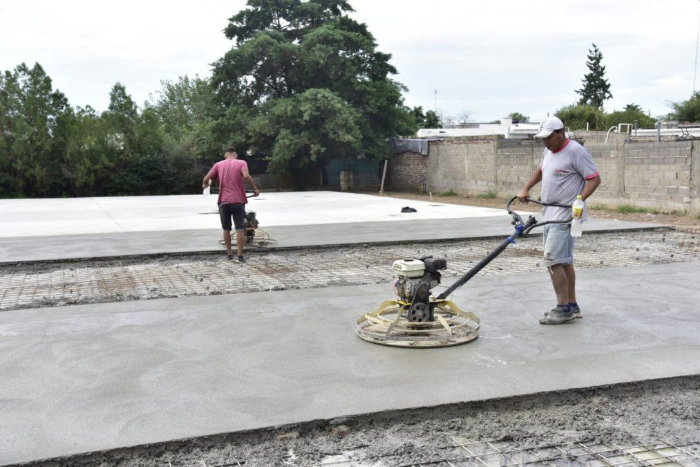 En las últimas horas se concretó el hormigonado de los diferentes paños que conforman la base y el alisado del cemento para lograr un acabado acorde al uso que tendrá el espacio. Previamente, también se ejecutaron las zanjas por donde pasan las cañerías para el cableado eléctrico del predio.