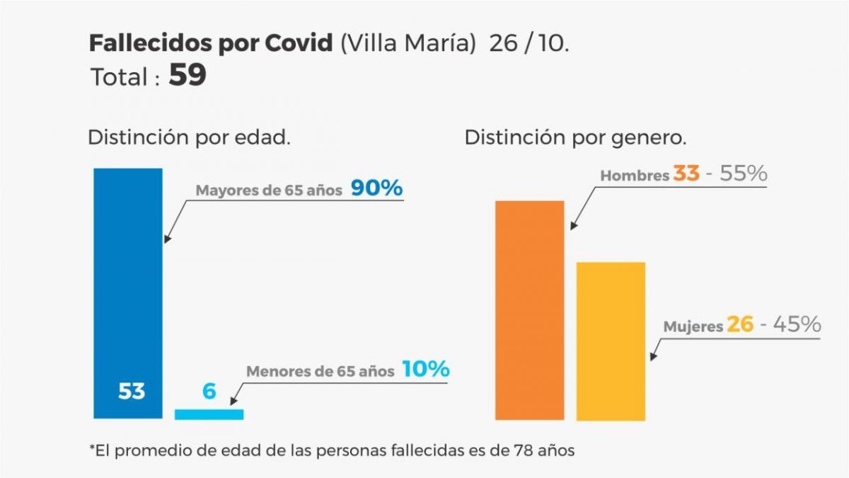 Villa María acumula 3.357 casos de coronavirus desde marzo. Las altas médicas acumuladas en ese periodo, fueron a 1.740. Los personas declaradas como contactos estrechos son 2.280.