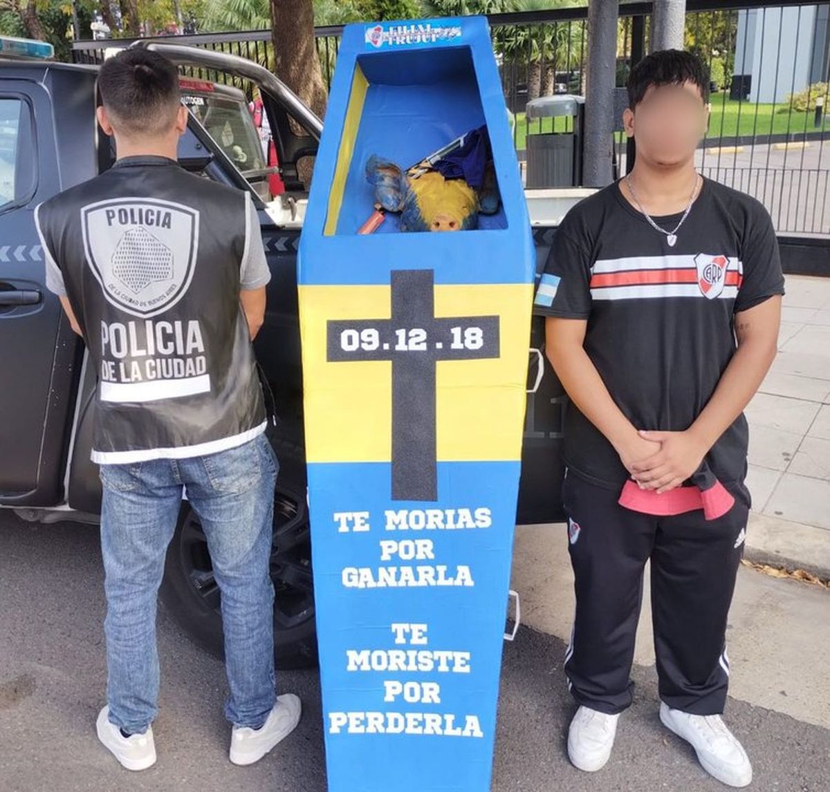 En otro procedimiento, efectivos interceptaron a personas que trasladaban ataúdes simbólicos con los colores del club rival, los cuales fueron secuestrados por considerarse una provocación.