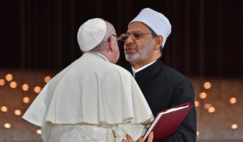 Lo más destacado de la visita a los Emiratos Arabes, aparte de una misa multitudinaria, fue la firma de un documento "sobre la fraternidad humana", junto al gran imán sunnita del instituto egipcio Al Azhar, jeque Ahmed Al Tayeb.