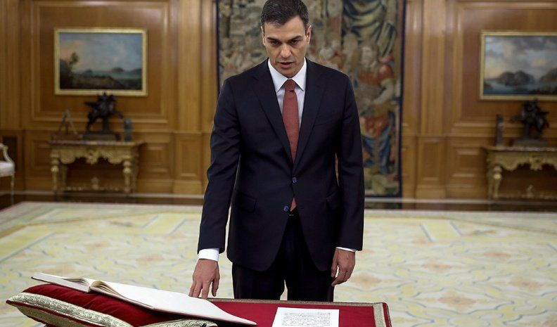 El socialista Pedro Sánchez asumió hoy como presidente del gobierno de España, cuyo gabinete aún debe constituir, tras jurar el cargo ante el rey Felipe VI en el Palacio de la Zarzuela de Madrid, al día siguiente de desbancar al conservador Mariano Rajoy con una histórica moción de censura en el Congreso de Diputados.