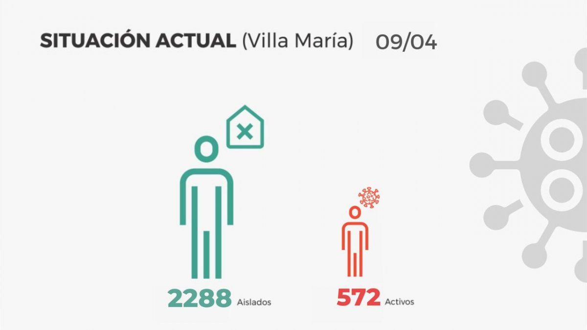 Sin embargo, informaron que son 2.288 los villamarienses aislados, de los cuales 1.716 son contactos estrechos de positivos confirmados que permanecen en sus hogares.