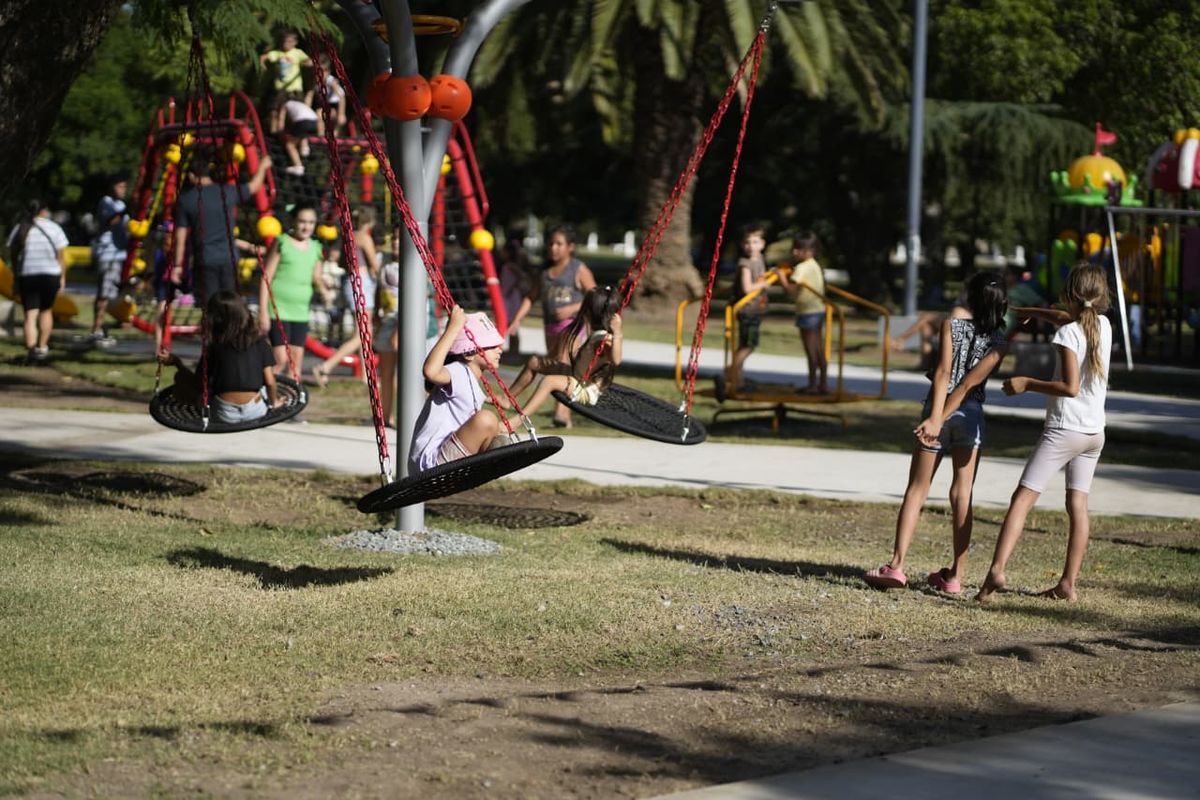 La plaza Pedro Viñas, ubicada dentro del Parque de la Vida, volvió a llenarse de familias, juegos y actividades tras la finalización de las obras de refuncionalización, que permitieron renovar y ampliar el mobiliario destinado al uso recreativo de niños y niñas.