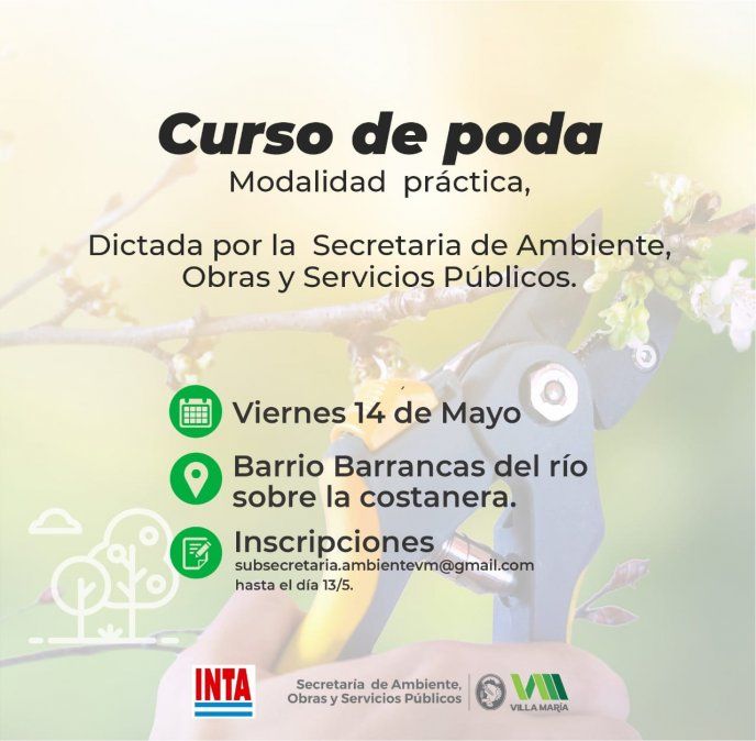 La Secretaría de Ambiente, Obras y Servicios Públicos del municipio llevará adelante un curso de poda para aquellas personas que deseen conformar el listado oficial de podadores habilitados para llevar adelante la tarea.