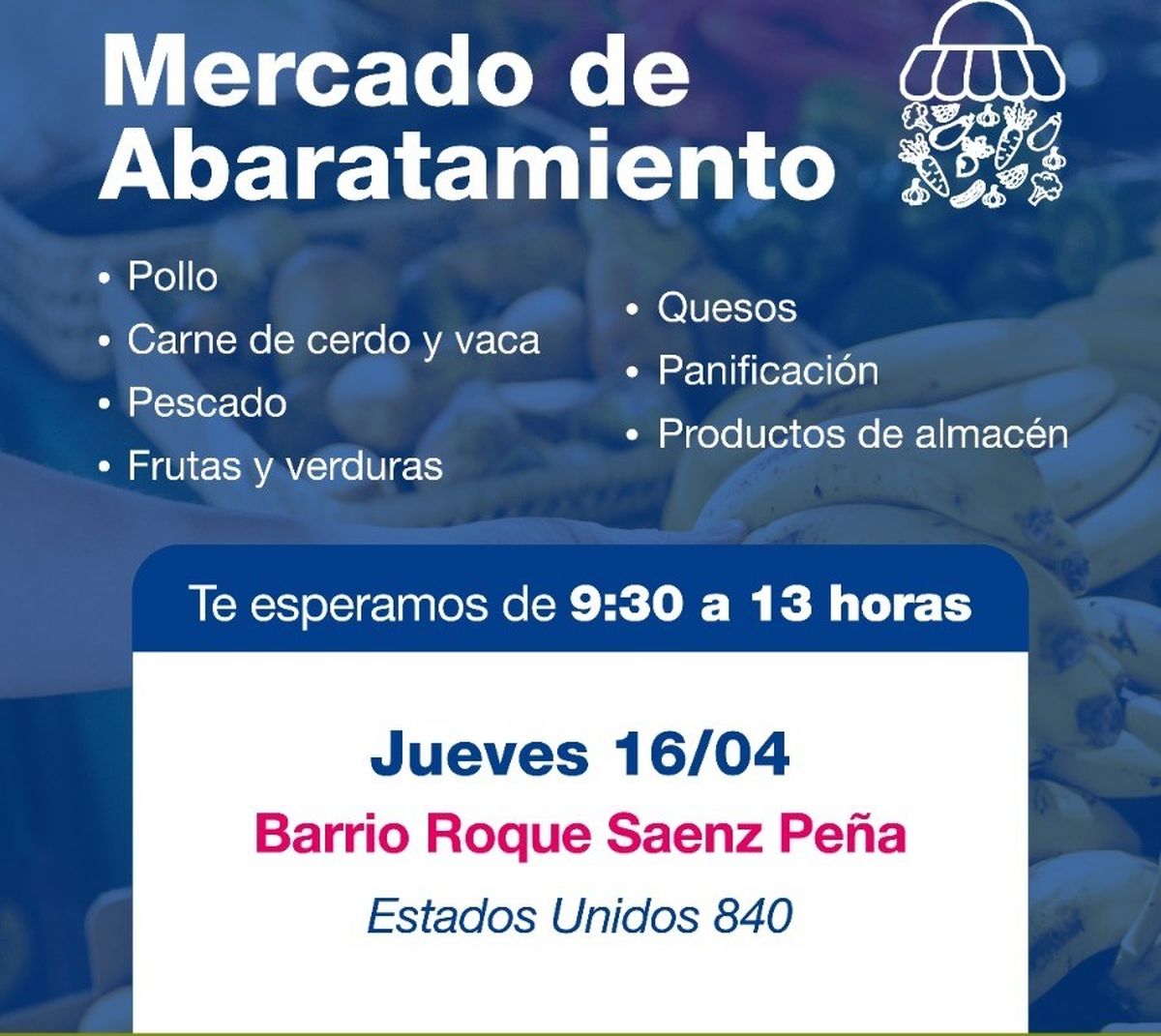 La actividad tendrá lugar en Estados Unidos 840, de 9:30 a 13:00, donde vecinos podrán acceder a productos de primera necesidad a precios accesibles, como pollo, carne vacuna y de cerdo, pescado, frutas y verduras, quesos, panificación y artículos de almacén.