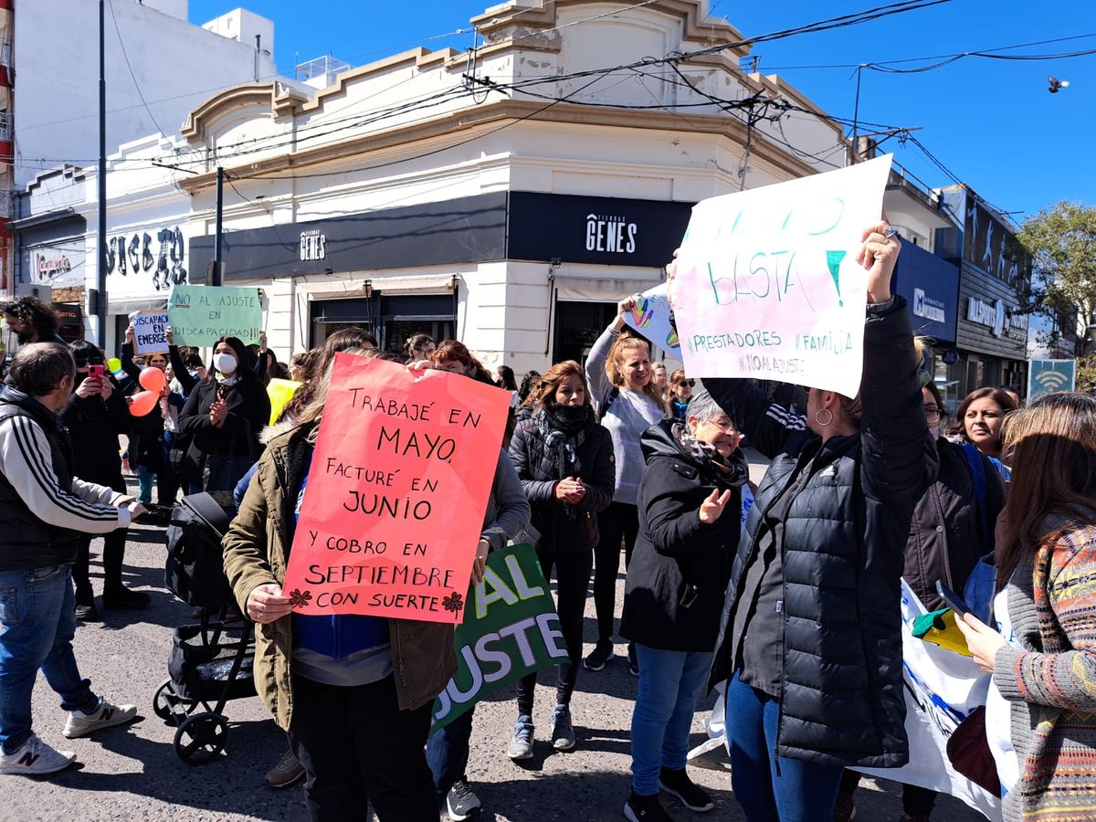 Prestadores de la salud y de otros rubros que trabajan con personas con discapacidad marcharon este lunes por las calles de la ciudad para hacer visible su preocupación.