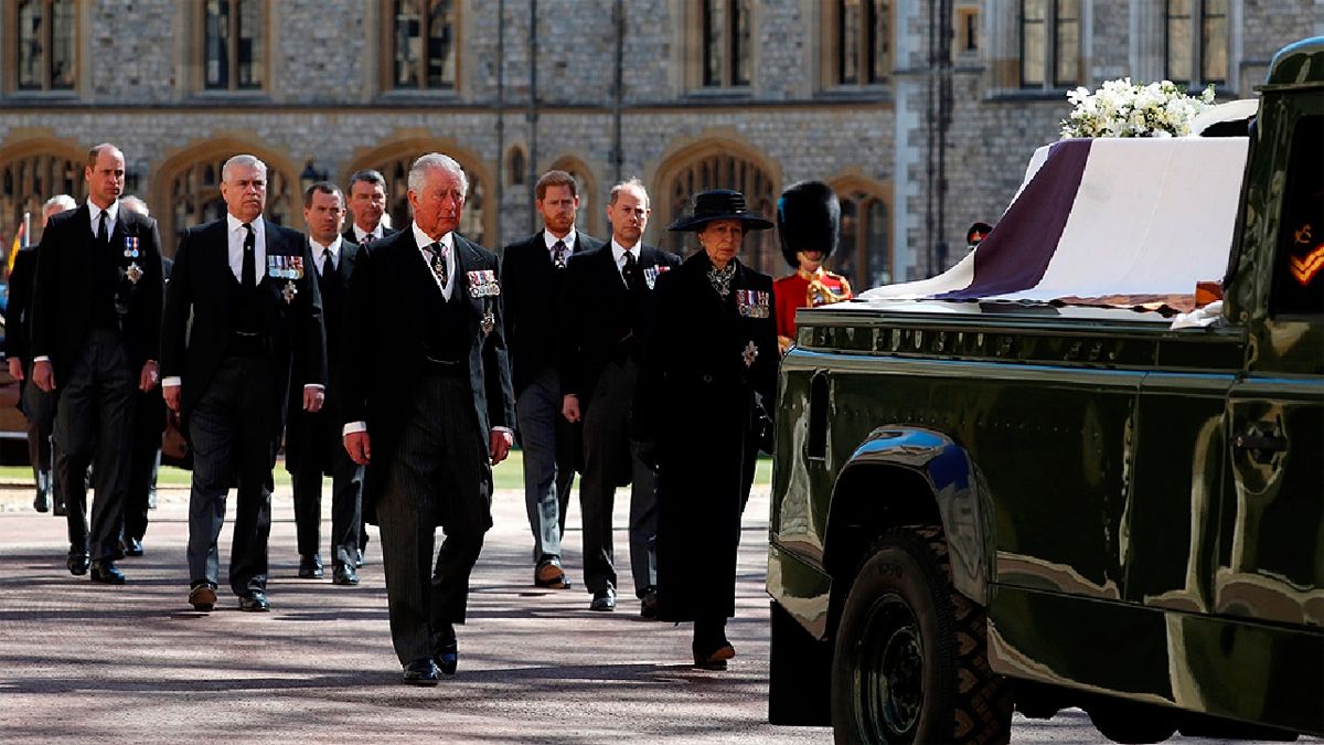 Bajo un cielo azul, el resto de la familia caminó detrás de un Land Rover especialmente diseñado por el propio Felipe para llevar su féretro.