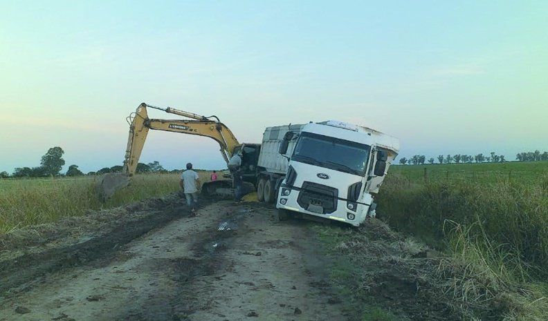 Dicho camión transportaba burlanda para el tambo, y tuvo que ser asistido por maquinaria de los consorcios camineros para poder ponerlo nuevamente sobre el camino.