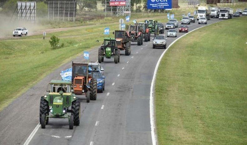 Los productores autoconvocados se concentraron en el cruce de las rutas nacionales 34 y AO12 para marchar hasta el Monumento a la Bandera, donde también protestaron contra la suba de impuestos provinciales.