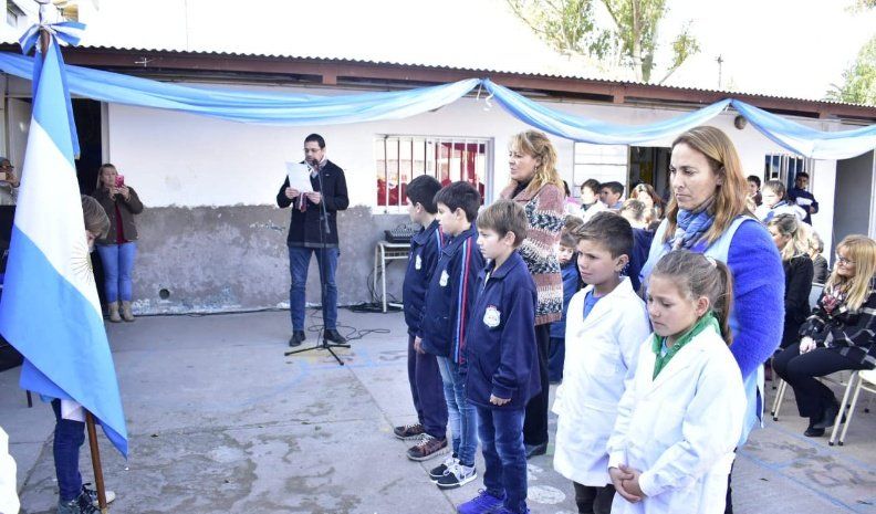 Alumnos de las escuelas rurales Antonio Sobral y Lorenzo Suárez de Figueroa, hicieron juntos su promesa a la bandera, en un emotivo acto que fue encabezado por el intendente villanovense, Natalio Graglia.