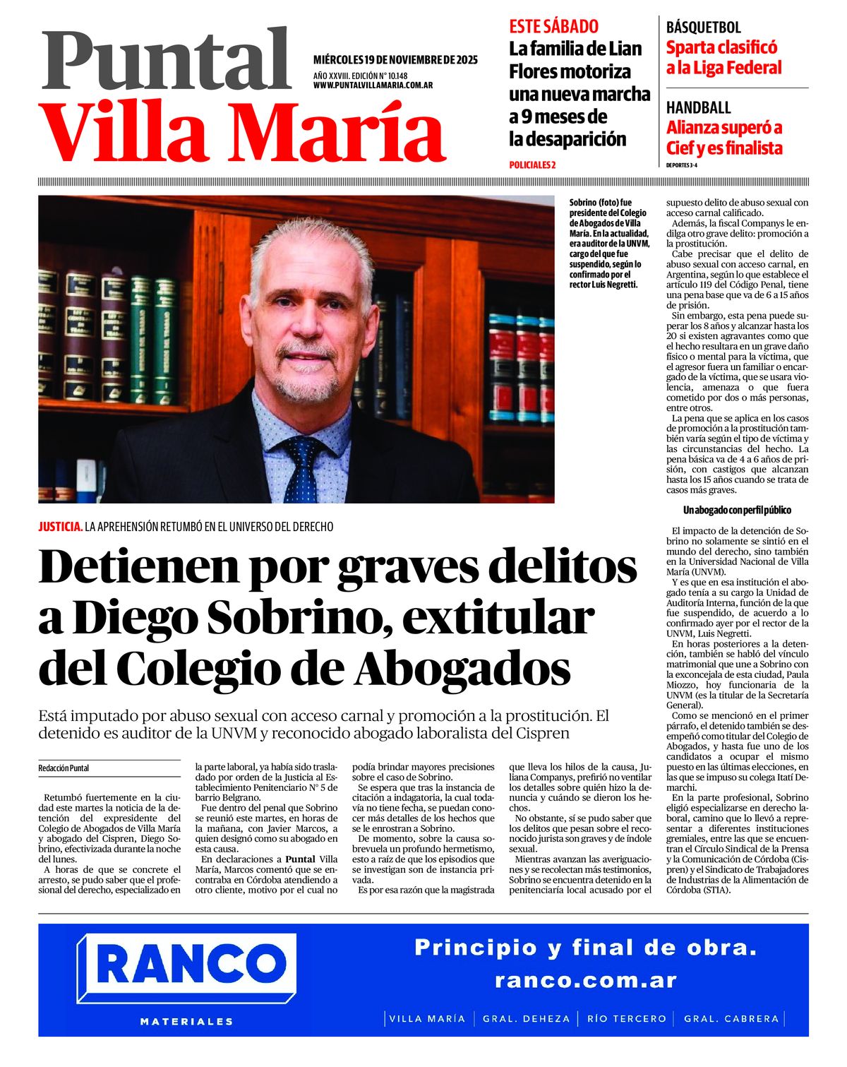 Villa María | Puntal | Accedé a la edición digital de Diario Puntal Villa María Te acercamos el diario completo para que no te pierdas ninguna de nuestras notas 19 de noviembre de 2025 - 09:08
