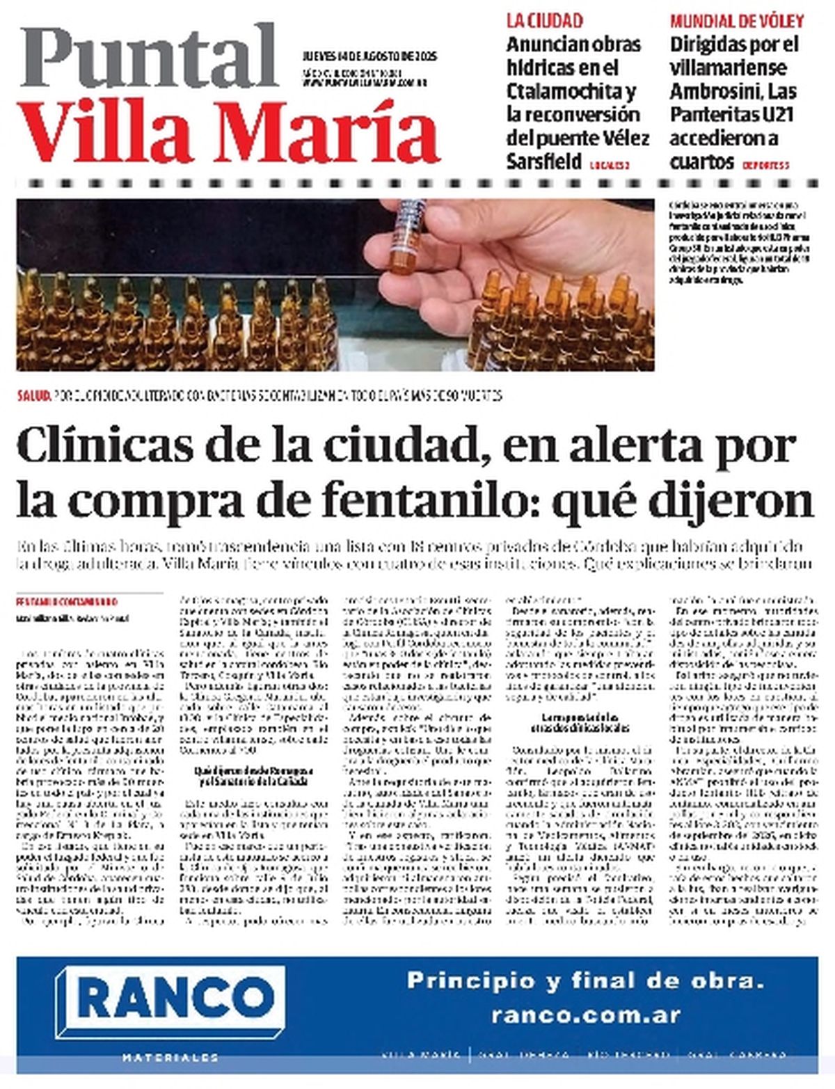 Villa María | Puntal | Accedé a la edición impresa de Diario Puntal Villa María Te acercamos el diario completo para que no te pierdas ninguna de nuestras notas 14 de agosto de 2025 - 08:42