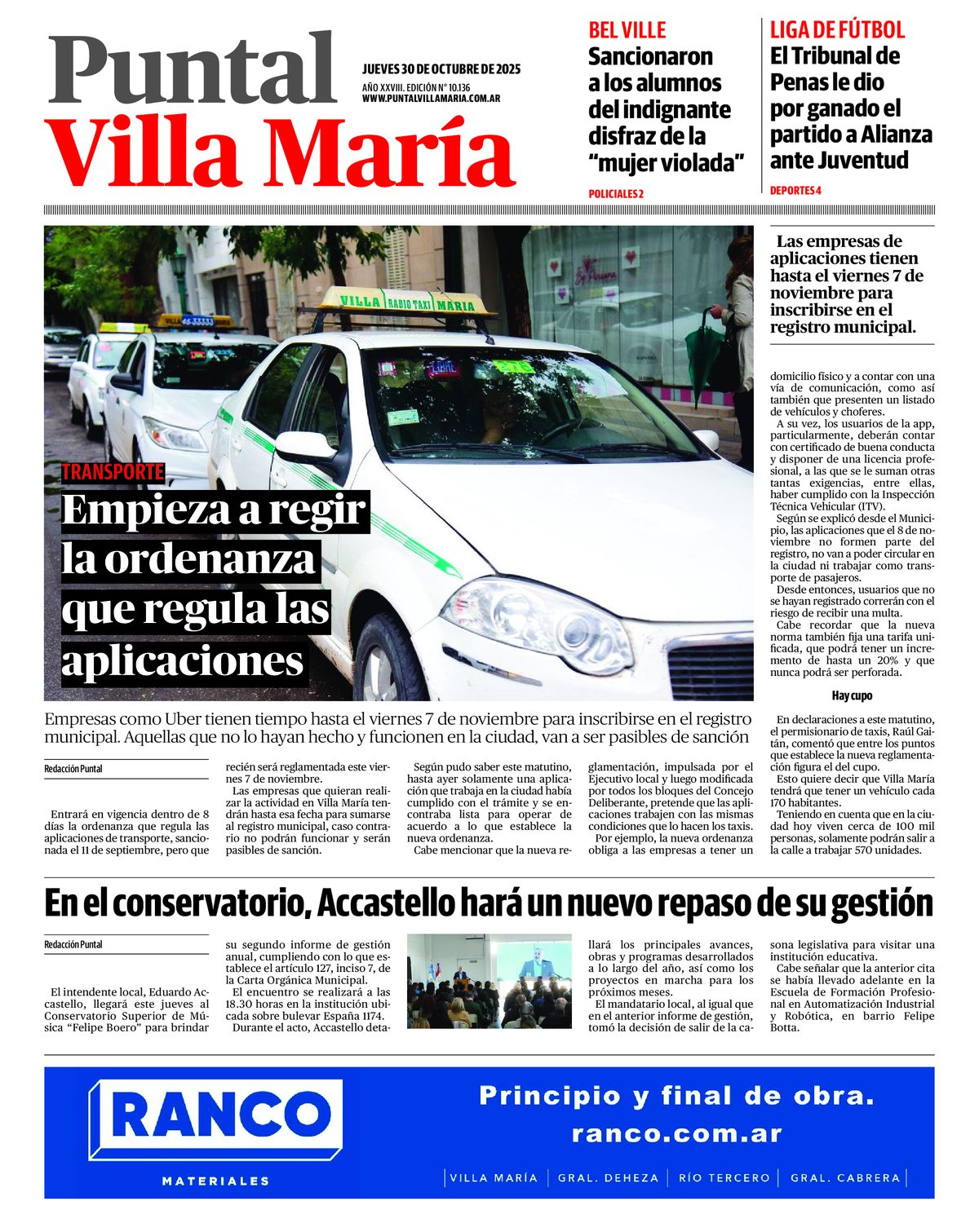 Villa María | Puntal | Accedé a la edición impresa de Diario Puntal Villa María Te acercamos el diario completo para que no te pierdas ninguna de nuestras notas 30 de octubre de 2025 - 10:09
