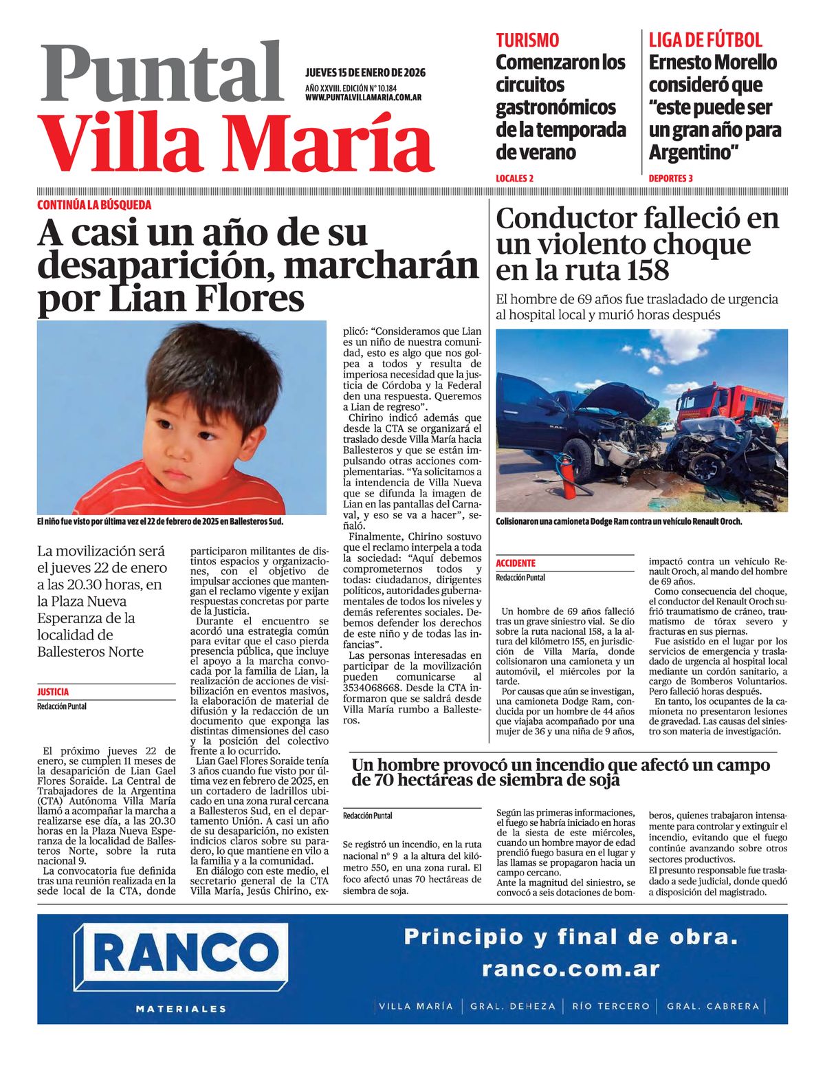 Villa María | Puntal | Accedé a la edición impresa de Diario Puntal Villa María Te acercamos el diario completo para que no te pierdas ninguna de nuestras notas 15 de enero de 2026 - 10:22