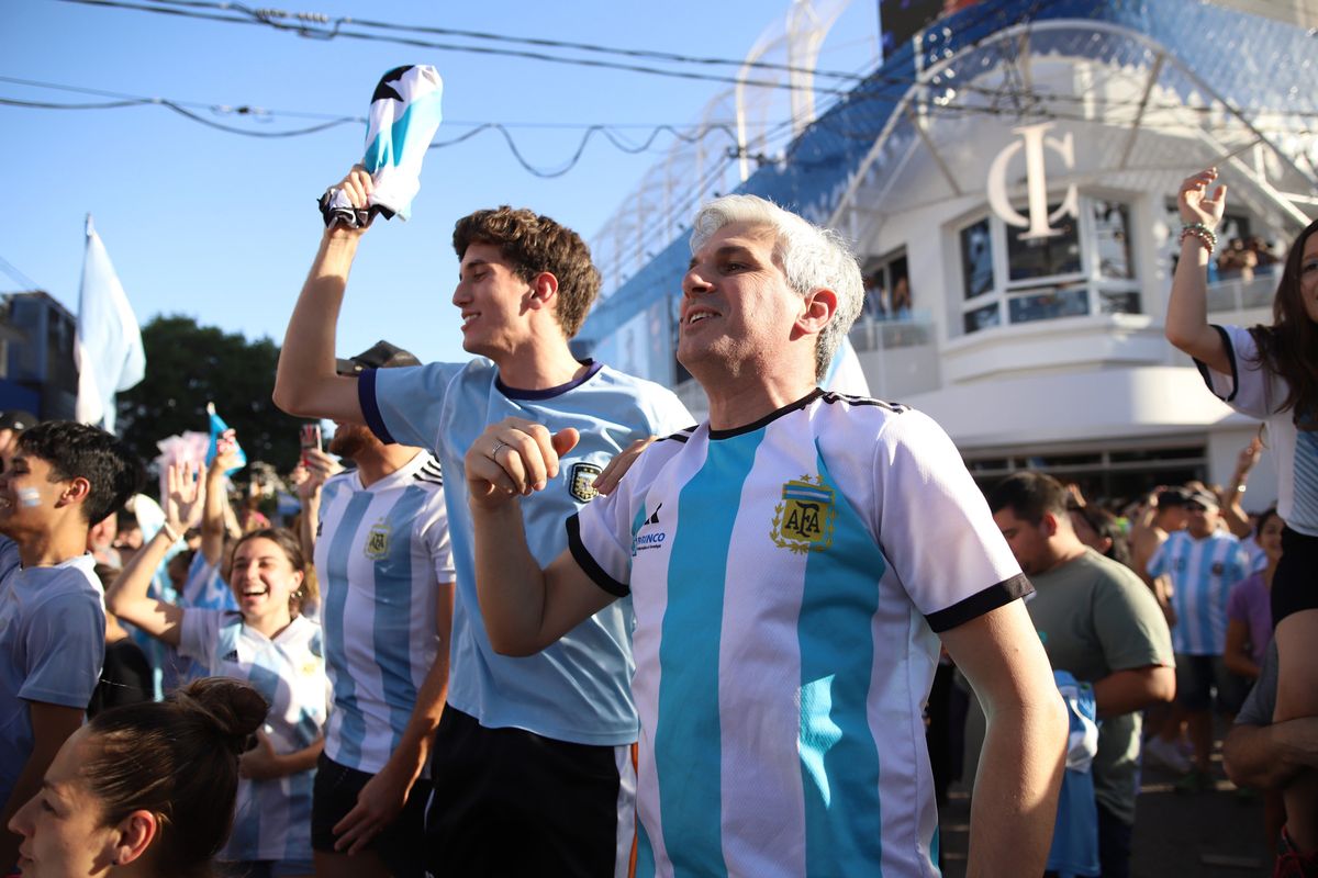 Las banderas y las camisetas se ganaron rápidamente la escena y todo fue un carnaval, que se extendió por bastante tiempo. No fue explícito, pero en el centro de la ciudad quedó la promesa de volver a festejar el próximo domingo, sea cual sea el resultado.