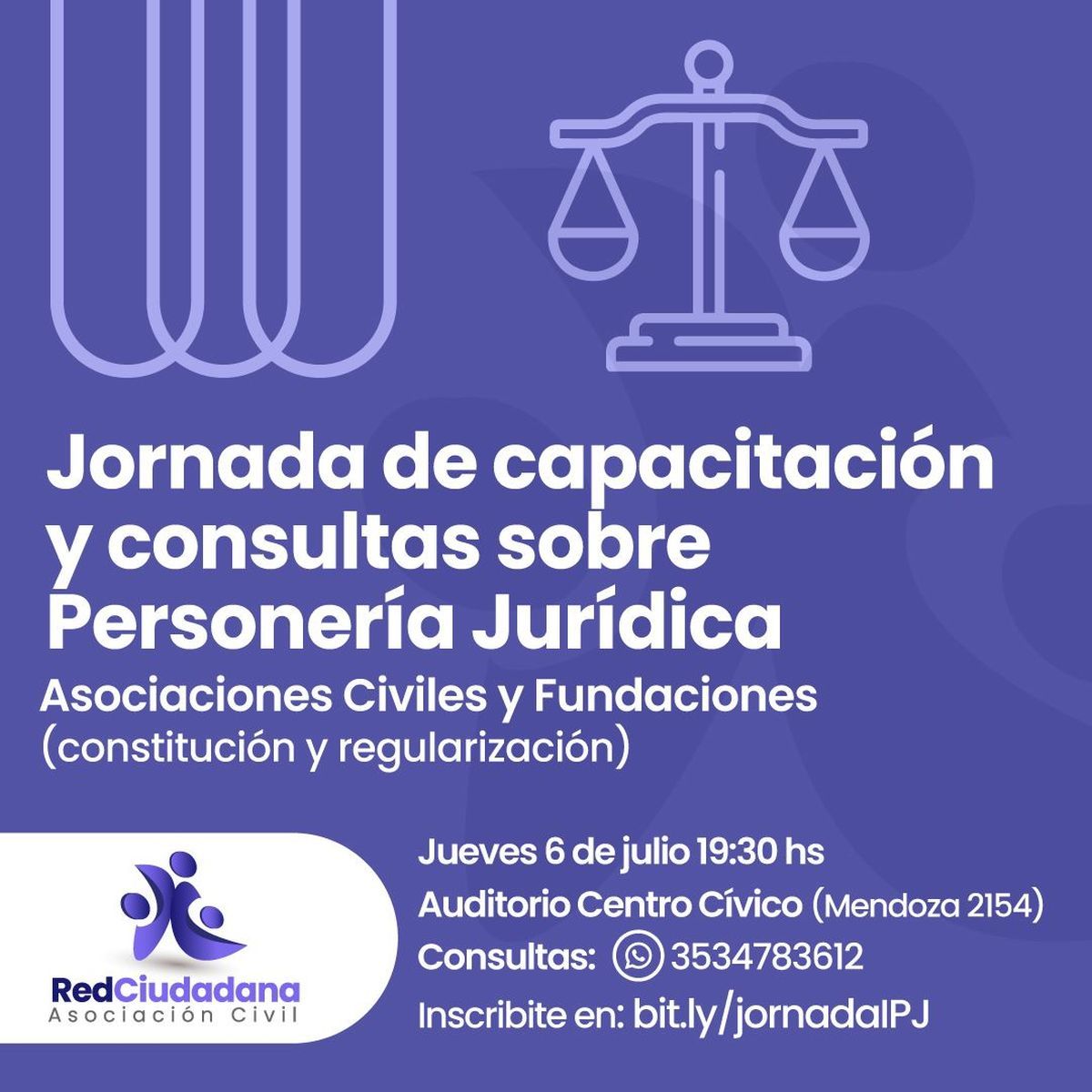 La Asociación Civil Red Ciudadana, que preside el secretario de Comunicaciones de la provincia de Córdoba, Marcos Bovo, impulsa una jornada de capacitación y consulta sobre personería jurídica.
