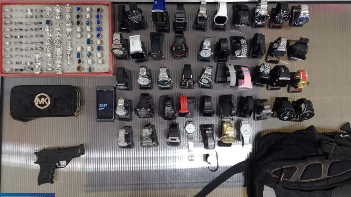 Horas más tarde, y por orden de la Fiscalía del Primer Turno, a cargo de Silvia Maldonado y bajo la secretaría de Dalila Alcalá Riff, uniformados de la regional policial allanaron un departamento céntrico de calle Hipólito Irigoyen, donde se encontraron 47 relojes de diversos tamaños, un total de 93 anillos, un teléfono celular, una mochila, un monedero y una réplica de pistola.