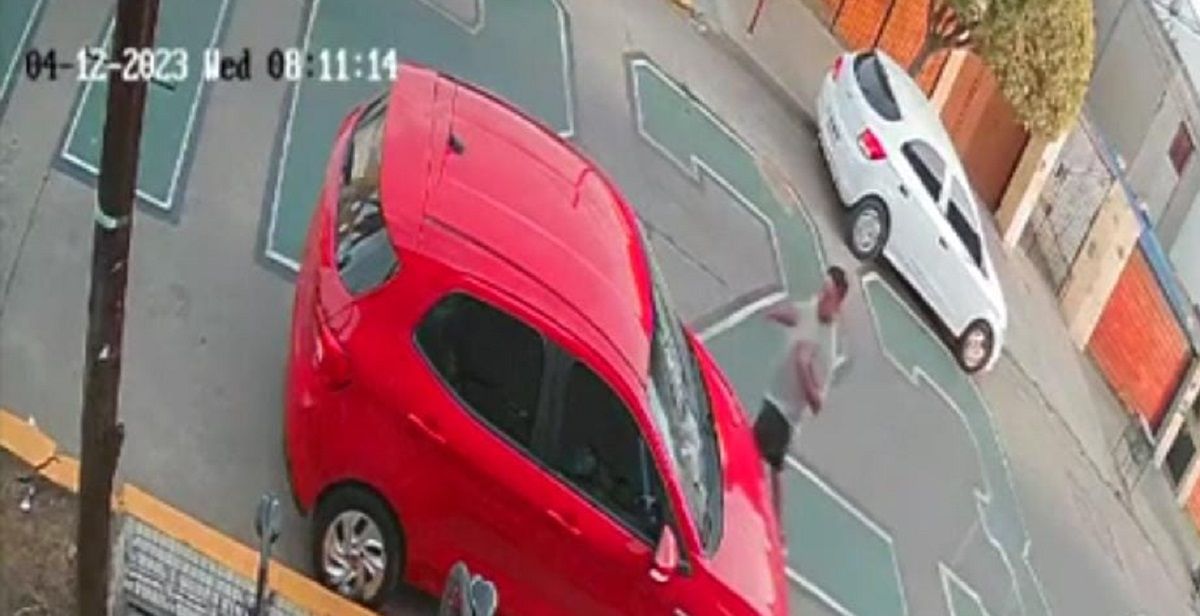 Un sujeto quedó filmado por una cámara de seguridad cuando abrió un auto que se encontraba estacionado en la puerta del establecimiento educativo, en el barrio Lamadrid.