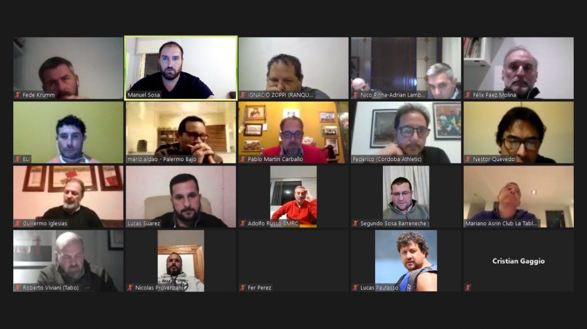 Presidentes de diferentes clubes del rugby cordobés, entre ellos, Manuel Sosa, presidente de Jockey Club, y Adolfo Russo, presidente de San Martín, se reunieron con el madamás de la Unión Cordobesa, Félix Paéz Molina, vía plataforma Zoom. Allí y bajo los lienamientos de la UAR se trazaron los siguientes puntos: ayuda económica para los clubes, que será un porcentaje según la cantidad de jugadores fichados; los protocolos y avances hasta el momento , los pasos a seguir en medio de la pandemia y el plan de desarrollo para los próximos 5 años de la entidad del rugby provincial.