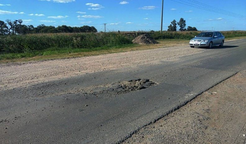 En Sampacho también el tránsito pesado va dejando su huella en el pavimento del camino que transcurre por la localidad.