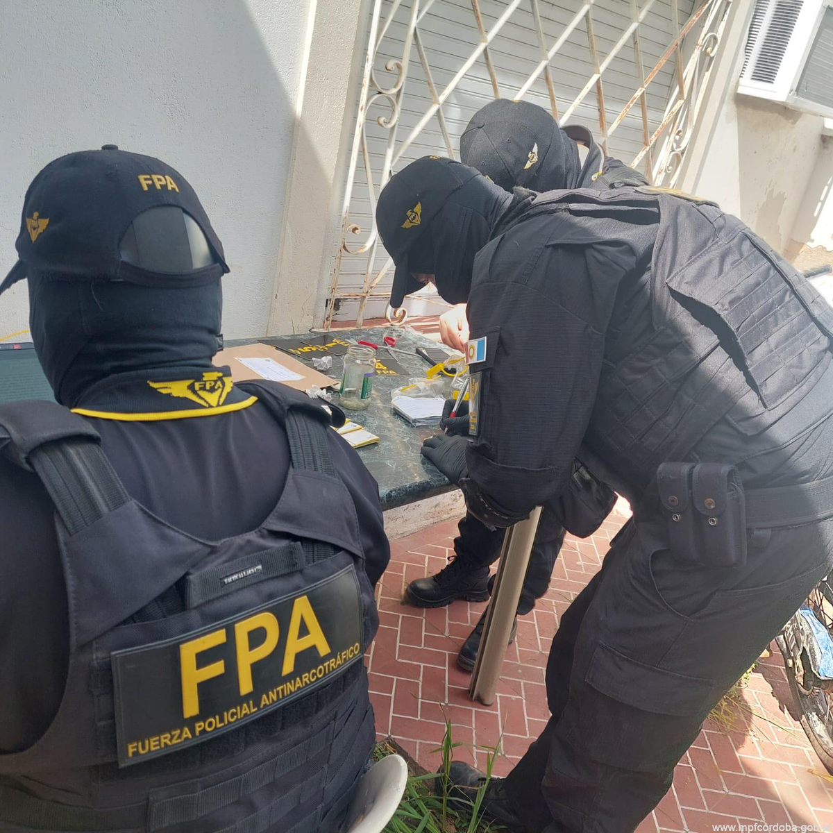 Los allanamientos fueron llevados a cabo en domicilios de calle Independencia al 2200 (barrio Roca) y en Dante Agodino al 500 (Parque). Colaboró Policía de Córdoba en la seguridad del anillo exterior a las moradas.