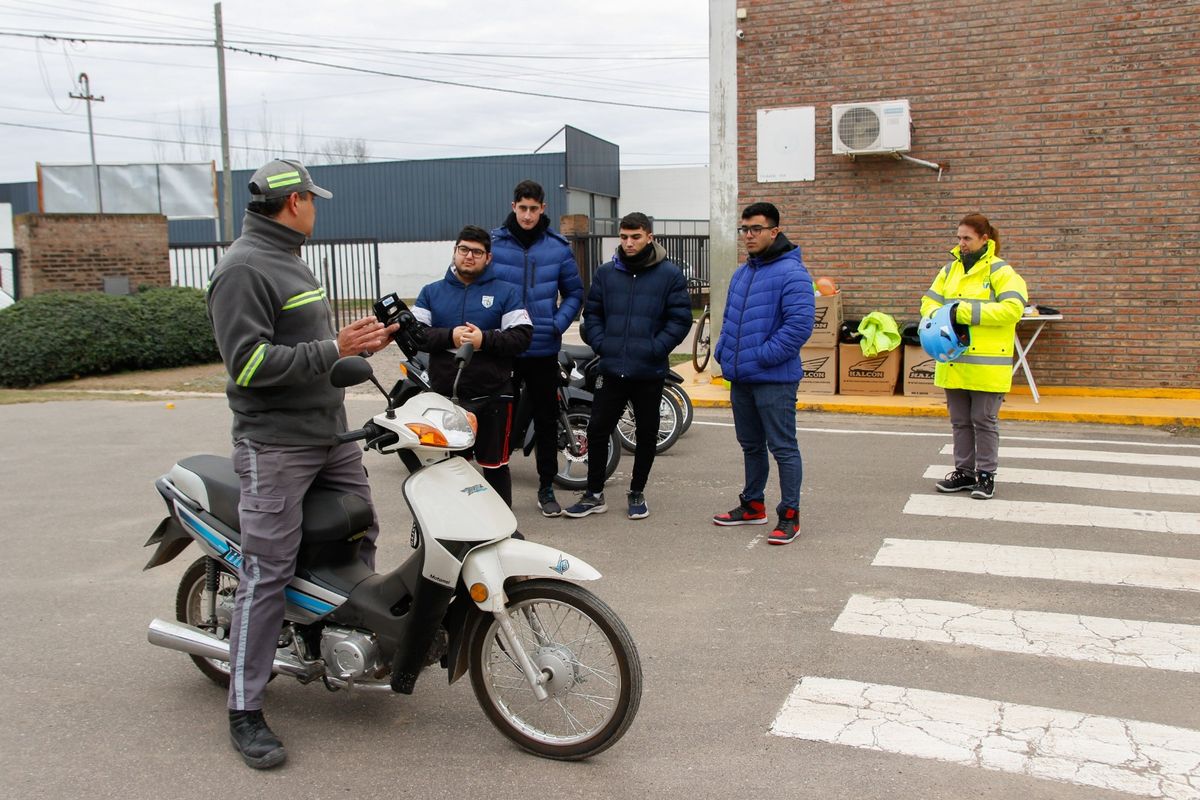A través del área de Educación Vial, estudiantes de distintas escuelas de la ciudad se capacitaron en el uso seguro de motocicletas y cascos, durante la actividad que tuvo lugar en el Vial Parking local, situado en barrio Industrial.